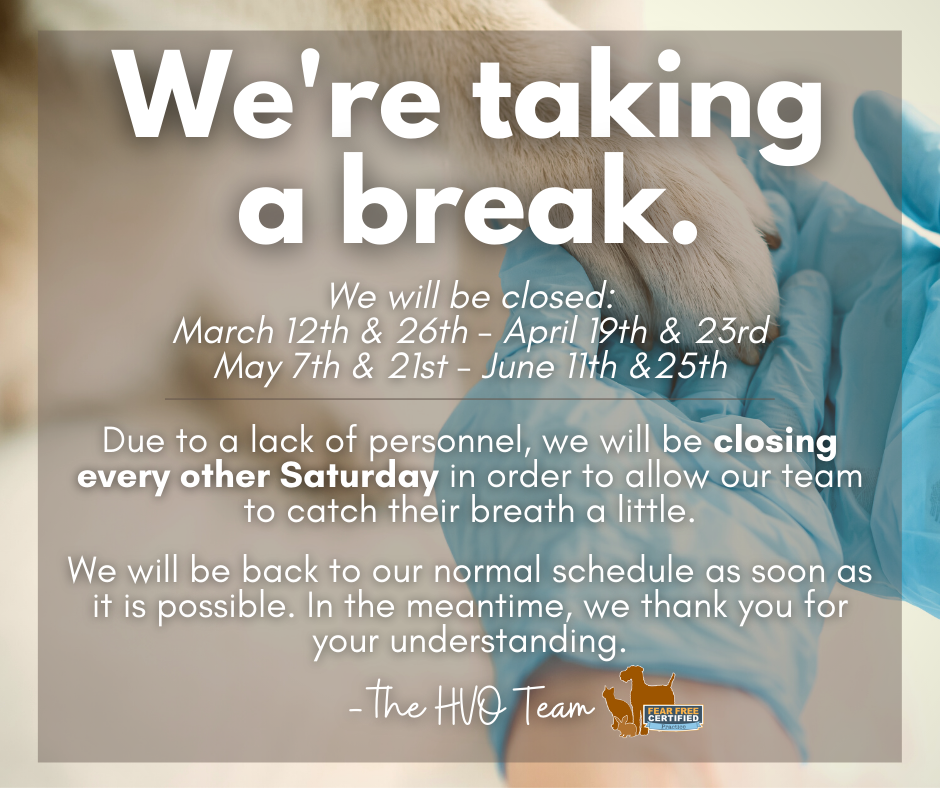 The quality of our care and service is always our priority, and right now we need to take care of our team so that they can continue to take care of your pets.