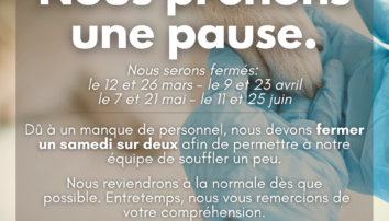 Veuillez noter que nous serons fermés un samedi sur deux, aux dates suivantes: